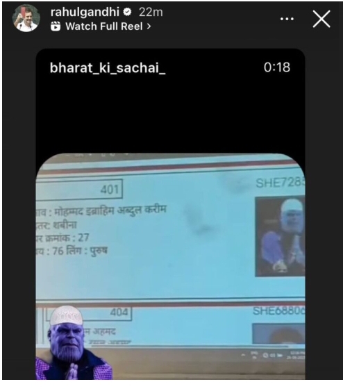 कांग्रेस सांसद राहुल गांधी ने भी अपनी इंस्टाग्राम स्टोरी पर यह वीडियो शेयर किया। यह वीडियो अब वायरल हो रहा है।
